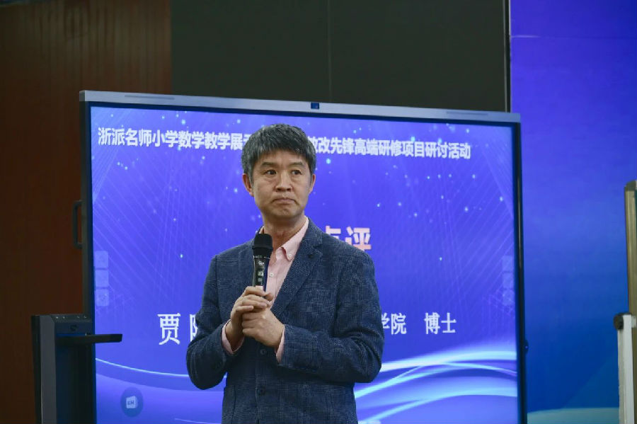 浙江省教坛新秀、洞头区小学数学教研员杨业老师和浙江外国语学院贾随军教授分别做专业点评。杨业老师对《我也来称象》一课给予高度评价。本课内容属于综合与实践领域,《我也来称象》一课有机地将数学、科学学科特点相融,实现跨学科学习,是一次尝试更是一次突破。贾随军教授站在“问题核心”角度,围绕三节课体现的学生问题意识进行讨论。学生有了问题,才会有思考和探索;有探索才会有创新和发展。