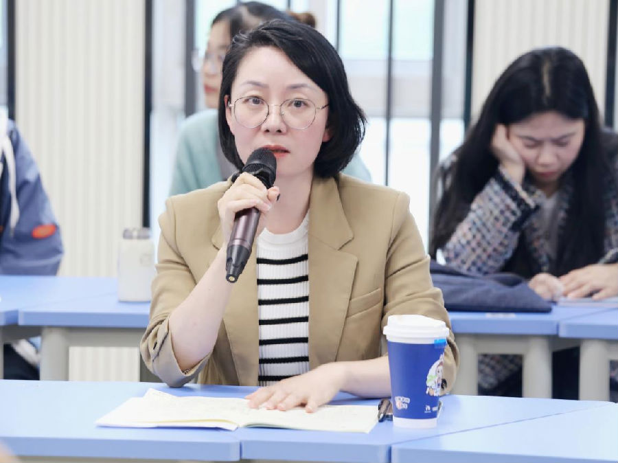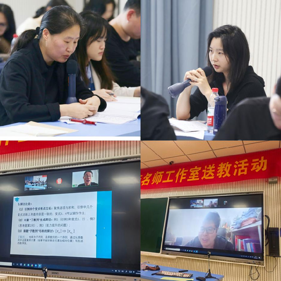 意犹未尽的两堂示范课后,在苍南县数学教研员潘友喜老师的主持下,灵溪中学的胡蜜蜂老师,灵溪二高的陈艳老师谈了自己听课感想与收获。并且连线援川的沈良老师与欧阳老师进行线上点评,他们充分肯定两位开课老师对课堂的充分准备和扎实的基本功,分享了他们对数列问题的思考和课堂设计的优化,高屋建瓴的想法让在座的学员们受益匪浅。