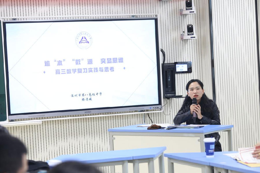 温州市第八高级中学滕诗媛老师带来了讲座《追“本”“数”源,突显思维——高三数学复习实践与思考》,从四个方面介绍他们的备考经验:应对——谋定而后动,实践——知数而有得,回归——厚积而薄发,思考——再谈逻辑推理。对高考命题,研究教材,数据分析和备考策略都有独到的见解,干货满满,让老师们收获颇丰!