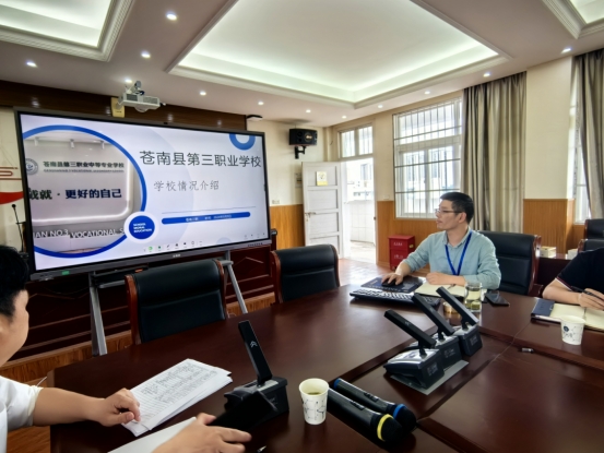 为了能更好、更顺利的开展教学共研,苍三职徐仁坤老师就学校的专业分布、学生学情、课程建设等情况进行介绍,让同仁对学校有一个初步的了解。