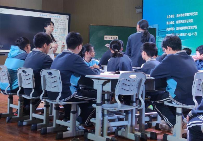 来自文成县黄坦中学的陈小伟老师带来的《自由平等的真谛》一课,以探寻背篓地铁上和谐的密码为总议题,聚焦社会热点问题,巧妙地以完成地铁运营机构给乘客的答复以及探究背篓地铁”和谐密码体现了怎样的理念?两个活动来推进整堂课,课堂氛围热烈,思辨性强,同时在议学活动中落实了学习目标。