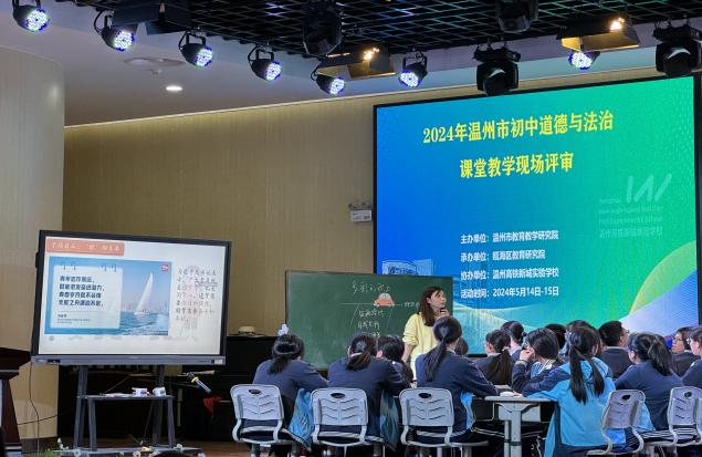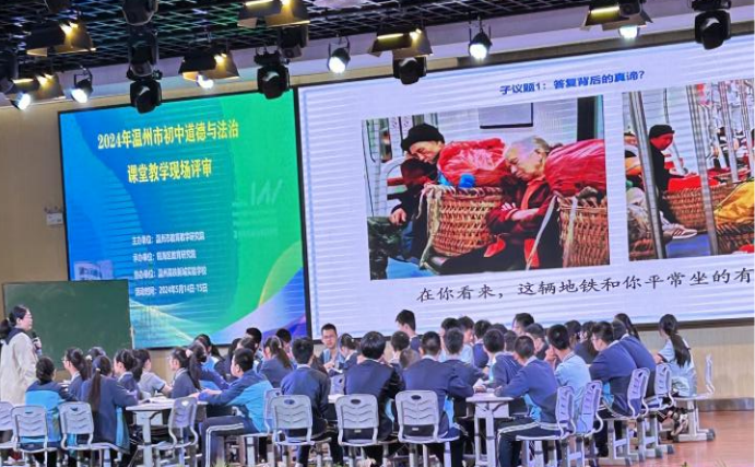 先由王小芳老师开启专家的引领:《2024年温州市初中道德与法治课堂教学评审观摩漫谈》。王老师提到市级课堂教学评审作为2年一次的大型比赛,展示了温州各县区对当前道德与法治课堂的认知水平,结束的是比赛,不停的是脚步。