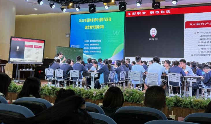 来自龙港的温海鸥老师展示《多彩的职业》一课,围绕“怎样的少年未来可期?”“少年,如何让未来可期?”“少年,未来如何可期?”三个子议题,以撰写职业生涯规划图为主要课堂任务,让学生明确家乡温州的发展需要怎样的人才,实现我们的理想需要付出怎样的努力。学会自我分析,了解社会所需,拥有正向的成长路径。
