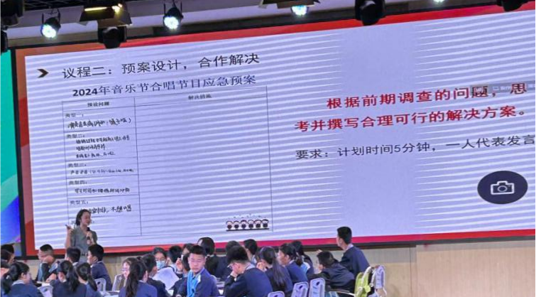 来自温州市第二中学的黄洁如老师带来的《我与集体共成长》一课,围绕“校园音乐节”这一真实情境切入,围绕音乐节巧妙设计三个议程:“初步设计,确定方案”“预案设计,合作解决”“活动感悟,绘制封面”,层层推进。整堂课简约利索、聚焦、清晰、深入从基点到落点一气呵成、在做中学,整堂课学生学习兴趣高涨、学习目标落实到位。