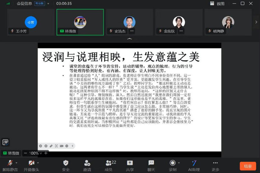 5月19日,温州市道德与法治学科教研员王小芳老师、乐清市教育研究培训院林雪微老师与工作室学员在线上相遇。