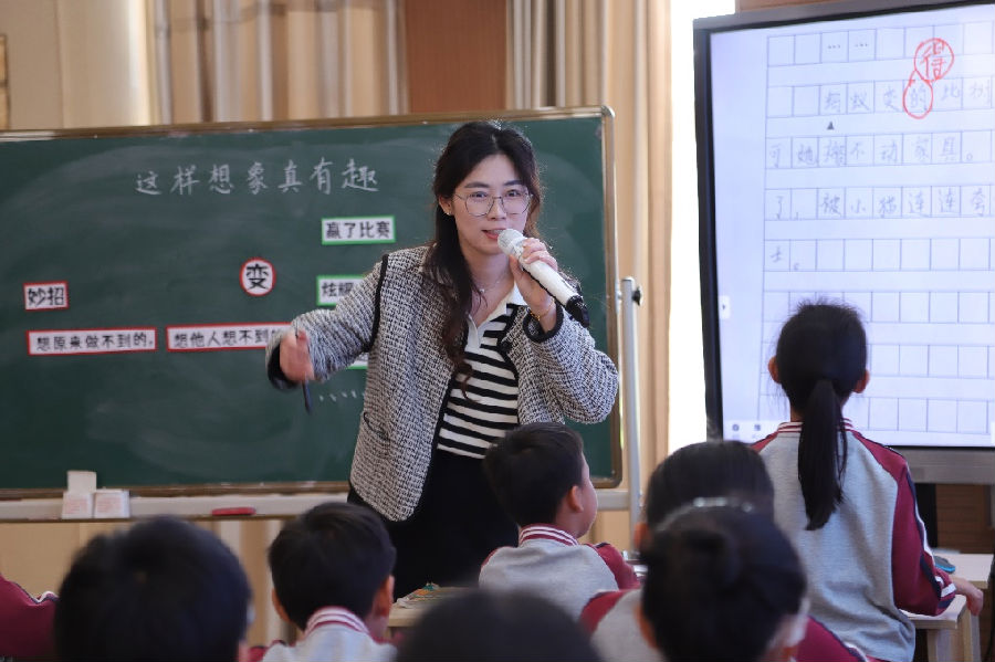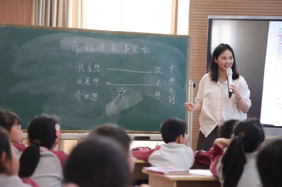 第二堂课是方梦瑶老师给我们带来的创意习作课《我钻进故事里啦》。方老师以“‘故事创新大赛’等你”来为情境,激发学生进行习作创新,以评价为指向:故事有新意,情节写具体,人物有形象。整堂课,老师带领学生填一填故事题目,编一编故事情节,写一写故事片段。学生习得策略、畅写情节、交流分享,方老师从根本上激发了学生创编故事的兴趣,帮助学生更有创意地编写童话故事。