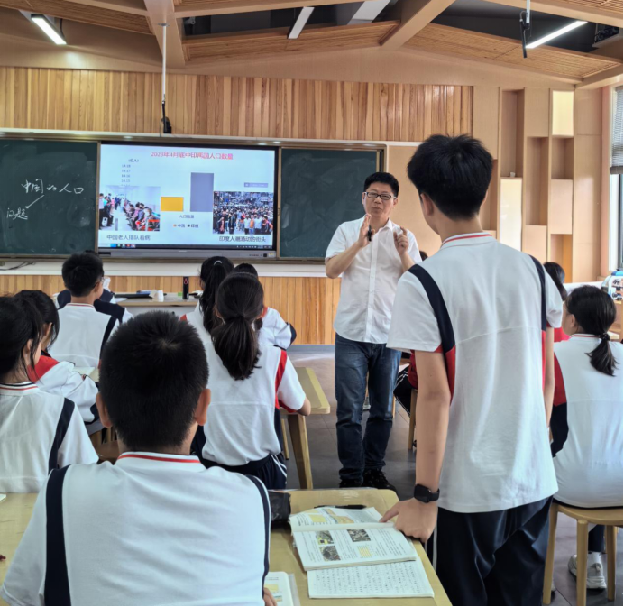 学科特级教师张强副校长以轻松愉悦的氛围带领八2班的孩子们共同探讨《图说:中国的人口问题》一课。张特重视图表数据的挖掘与利用,巧妙利用最新国际、国内、本土人口统计数据,在图说中培养学生读图与语言输出能力。聚焦真实问题,培养学生的批判性思维和创新精神,引导学生多角度辩证思考人口问题成因,人口数量与环境资源发展之间的复杂联系。最后的学生观点汇报,是本节课的核心环节,是对本课学习的有效反馈,也是能力的进阶。人口问题千头万绪,人口对策在动态中不断调整与发展。学生带着问题进课堂,同时带着问题走出课堂,走向未来探索人口问题的解决。