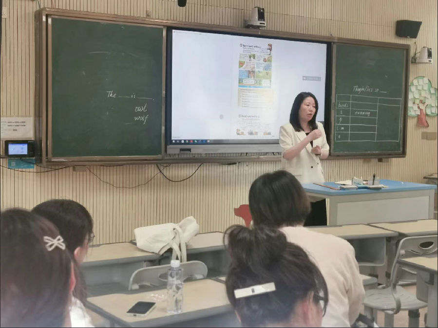 第三节课是由苍南县外国语学校的王青秀老师执教的PEP6 Unit6 A Let's talk。王青秀老师的本节课与杨芳芳老师是同课异构。上课伊始,王老师带领孩子们进行有趣的TPR活动,创设生动活跃的课堂氛围。紧接着,王老师通过问题引导孩子思考zoo里面会有哪些小动物?以“Happy day at the zoo”为教学主线,让生先猜一猜,再通过听一听,说一说,再看一看,说一说等活动逐步展开教学。教学过程设计精彩且环环相扣,教师不仅有知识的教学还有情感的引导与激发,真正做到让生学中乐,并达到“有话可说”的教学效果。同时,教师并非止步于本节对话知识,还拓展出夜间动物的活动的情景,让孩子们的视野更宽广起来,也激发了孩子们更大的学习热情。王老师本节课还很好地示范了怎样真正将“评”融入课堂,是一节值得学习的“教学评一体化”的精彩课例。