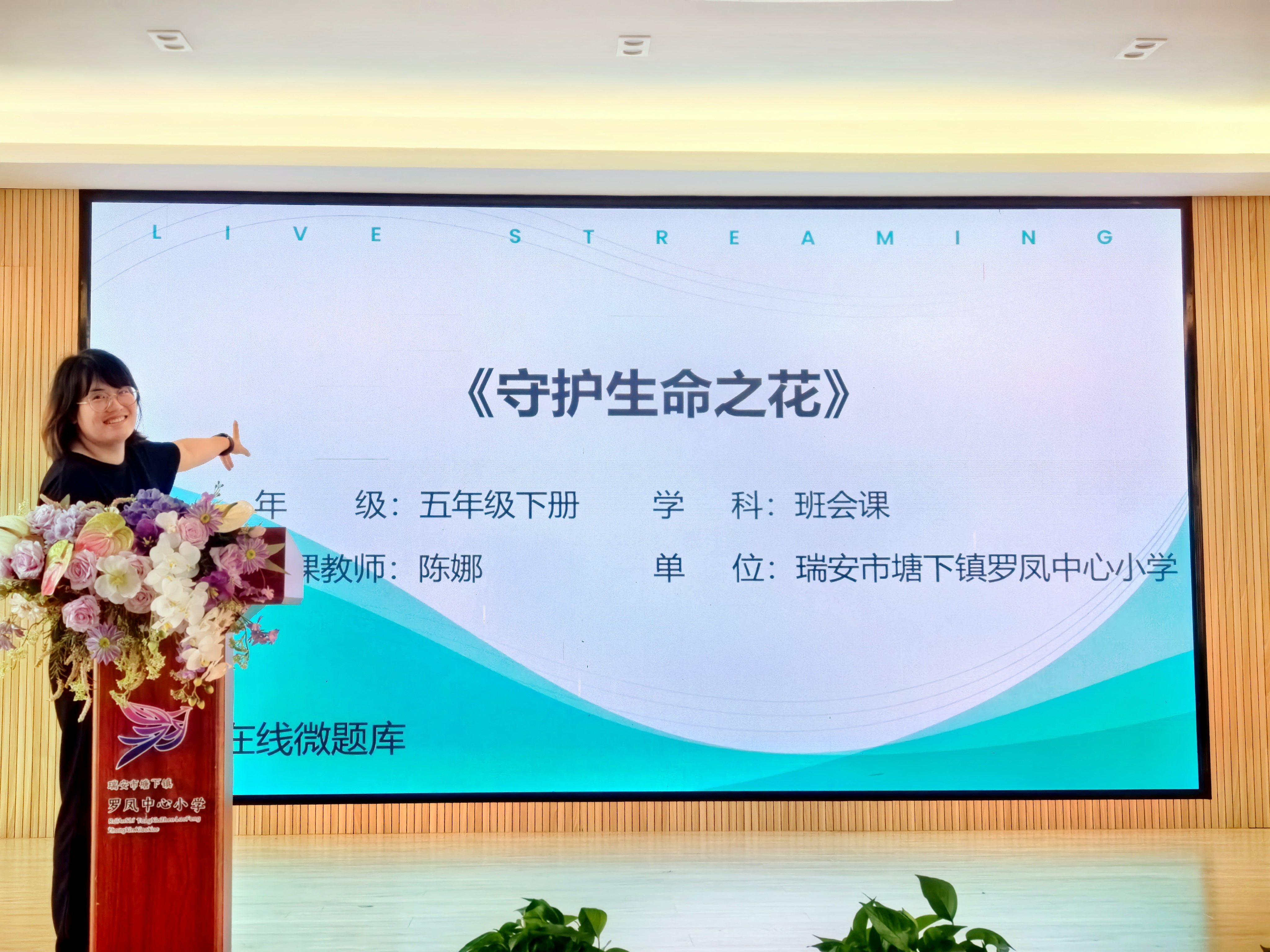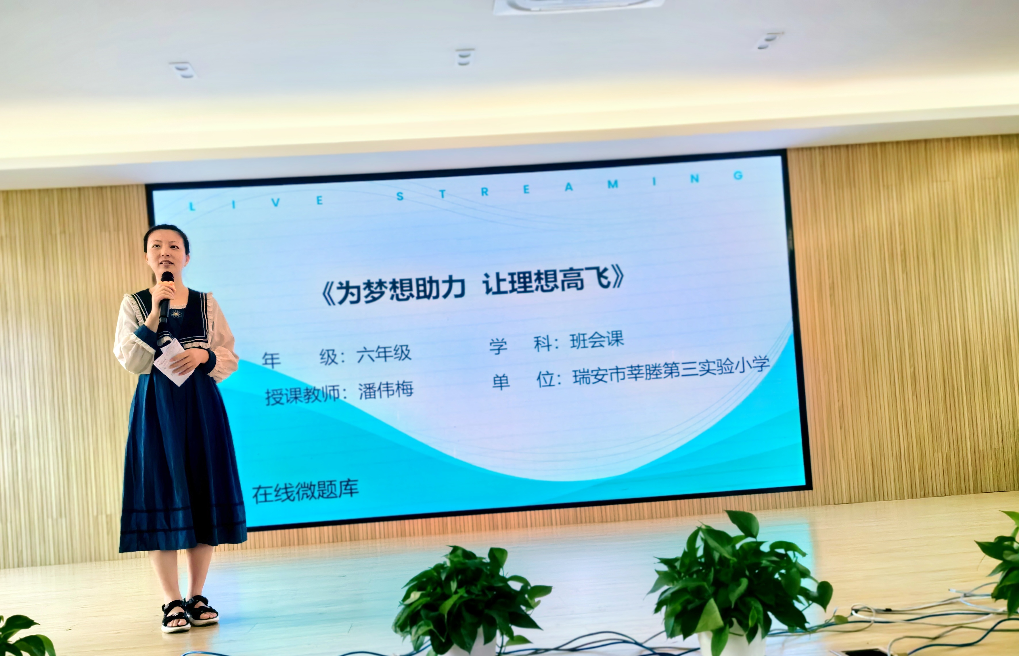 为提升工作室全体学员的主题班会的设计能力,与制作主题班会微课短视频的技术水平。6月14日,温州市丁丽娜名班主任工作室在瑞安市塘下镇罗凤中心小学阶梯教室举办了一场主题班会微课短视频展示活动。此次活动由赵勇老师主持。