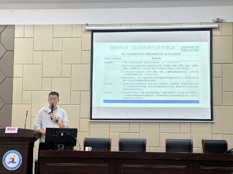 下午的活动首先由泰顺县中小学体育教研员蔡时延老师带来专题讲座《非移动性技能大单元设计与实践的思考》。蔡老师首先从义务教育阶段体育与健康课程内容出发,分析不同水平阶段的课程内容。针对水平一阶段基本运动技能蔡老师从基本运动技能的定义,分类等对照课程标准要求,如何设计和实践基本运动技能(非移动性技能)大单元做了更深一步的分析。