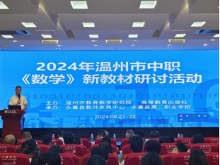 为打造教师假期学习共同体,提升教师整体素养,推进教学方式变革,2024年8月21日—22日,李来国名师工作室如期开展了第五期研修活动。整个工作室共同参加了由温州市教育教学研究院和高等教育出版社联合举行的2024年温州市中职《数学》新教材研讨活动。本次活动由温州市教育教学研究院中职数学教研员叶思义主持。