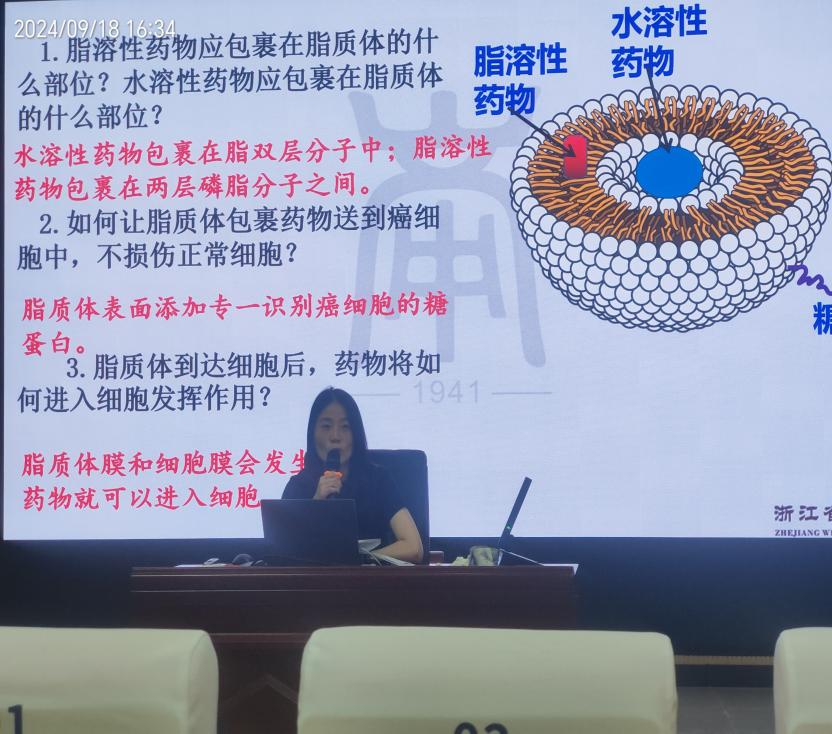 泰顺县城关中学的王丹丹老师对陈娴婷老师的课进行了点评,陈老师整堂课利用论证式教学,历史资料井然有序的呈现形成完整的证据链,开展了多项探究活动,激发了学生对流动镶嵌模型的理性探究,有效的发展了学生的科学思维,利用毛根等器材搭建流动镶嵌模型有利于学生对于流动镶嵌模型这一抽象概念的的把握,同时也激发了学社工的探索热情,最后通过脂质体运载药物也很好的注重知识与生活的联系。