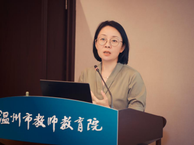 永嘉中学的周瑛老师带来讲座《洞悉高考题源,回归教材本质——浅谈青年教师试题命制与教学导向》。周老师立足教材,结合近几年全国高考试题和她的课堂实践,介绍她选题改题编题的做法。周老师深厚的数学功底,引领学员以“命题思维”优化“课堂教学”,突破教学思维的宽度和广度,既有深度又接地气。
