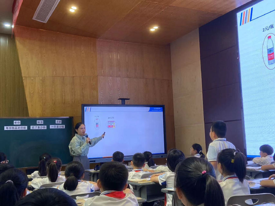 第三节,钱冬影老师讲授的《单价 数量 总价》课例,以生动的谈话形式导入,帮助学生理解单价概念及其重要性。通过两个精心设计的学习活动,学生们学会了如何筛选和关联相关信息。