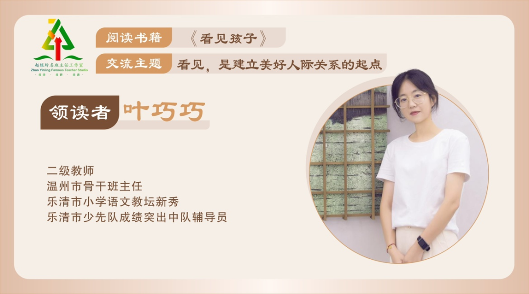 每一个孩子都是一部独特的生命史诗。教育,始于看见。来自乐清市虹桥九小的阅读分享伙伴叶巧巧老师,她分享的书籍《看见孩子》,让我们看见孩子遇见教育。在这个瞬息万变的时代,我们似乎总是忙于追赶生活的步伐,而忘记了停下脚步,真正去看见、去理解那些我们深爱的人。正如叶老师所说,孩子的每一个动作、每一个表情都充满了深意。叶老师的分享,给工作室的伙伴们带来启示:重新审视自己与孩子、与学生的关系。珍视孩子的天性,尊重儿童特点与发展规律,真正走进儿童的内心世界,和他们共同成长!