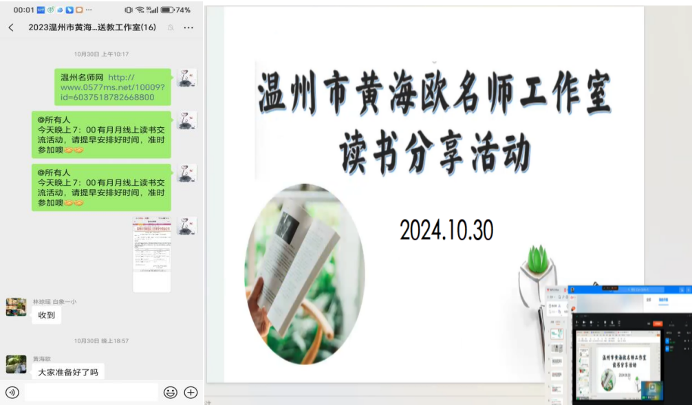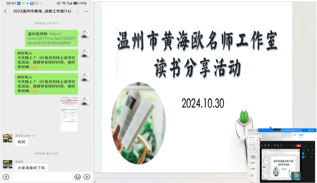 读书是教师最好的修行,也是教师“最长远的备课”。阅读虽不能改变人生的长度,却能延展人生的深度和厚度。为深入提升工作室学员的理论素养,推动工作室学员的自主成长与发展,2024年10月30日,黄海欧“名师送教”工作室一如既往地迎来了月月读书分享活动。