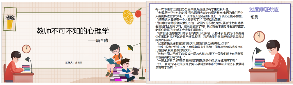 永嘉县桥下镇昆阳小学谷田田老师详细阐述了唐全腾的《教师不可不知的心理学》。此书以深入浅出的方式解析了心理学在教育实践中的应用,助力教师更好地理解学生心理,进而在教学过程中更加游刃有余。谷田田老师希望通过分享,能够促使教师们将心理学知识融入实际教学,以期提升教学效果。