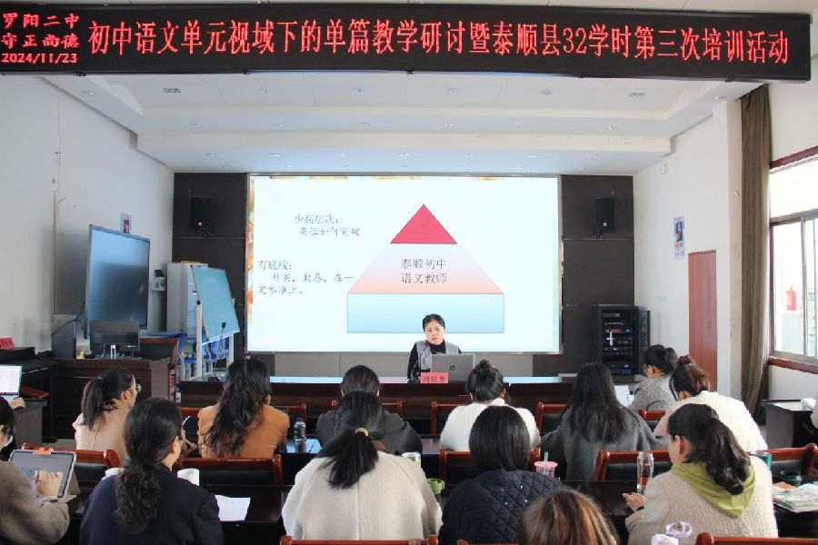 窗外寒风袭面,室内暖意融融。11月22日到23日,初中语文单元视域下的单篇教学研讨活动在泰顺县罗阳二中顺利开展。本次活动持续一天半,由教学展示课和专题讲座组成。