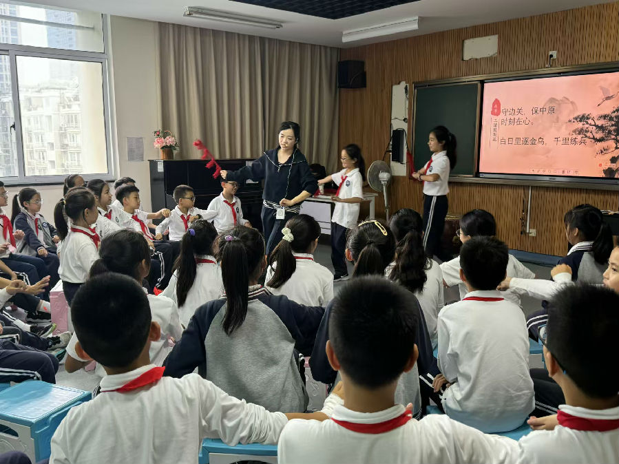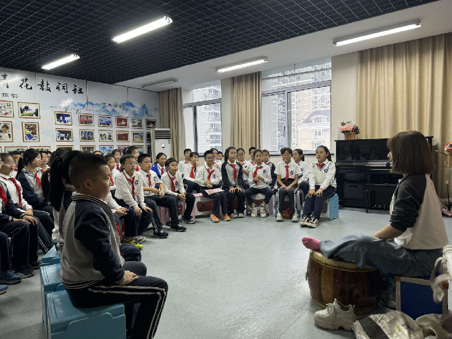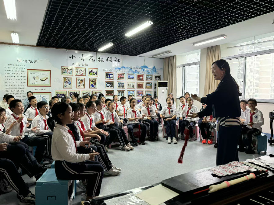 如果说渔灯舞展现了海的壮阔与民的淳朴,那么永嘉昆曲则是历史长河中的一颗璀璨明珠。在周晓秋老师的引导下,来自大门新城实验学校的董老师通过查阅相关书籍、拜访老艺人等渠道去了解永昆,寻找素材,而如何将素材搬到课堂,这无疑是又是一个挑战,通过第五次磨课的反复推敲与实践,让学生们在“巾帼英雄樊梨花–巡营片段”的体验中,跨越时空。孩子们从唱腔、板式到乐器、风格,全方位感受昆曲的魅力,既增强了互动性,又极大地提升了趣味性。这不仅是对非物质文化遗产的保护与传承,也是对青少年文化自信的培育,让传统艺术在新时代焕发新生。