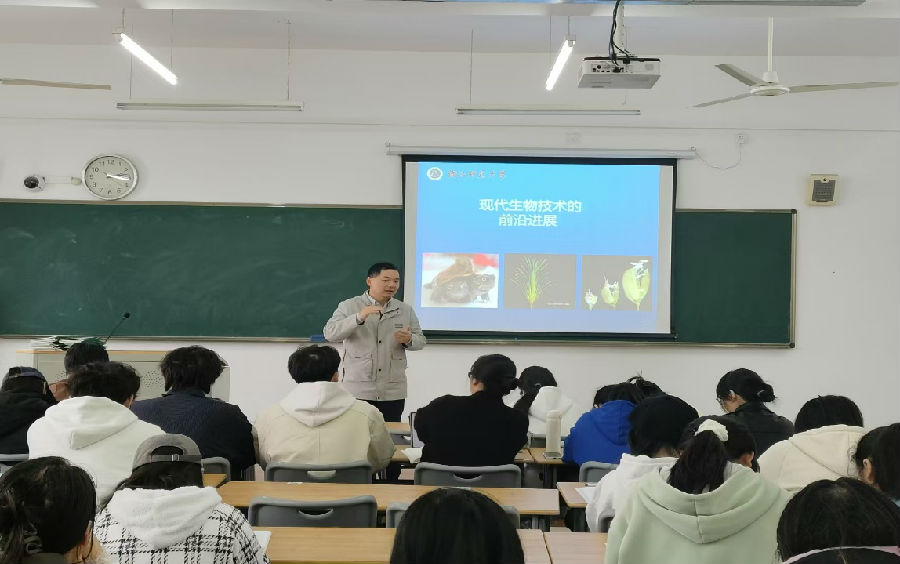 19日晚上,浙师大饶玉春教授为我们带来别开生面的讲座:《现代生物技术的前沿进展》。他向我们介绍了基因的结构、表达,转基因与杂交的区别和联系,转基因生物与转基因食品发展现状与管理以及基因编辑在现代生命活动的应用等等。幽默风趣,笑声不断。