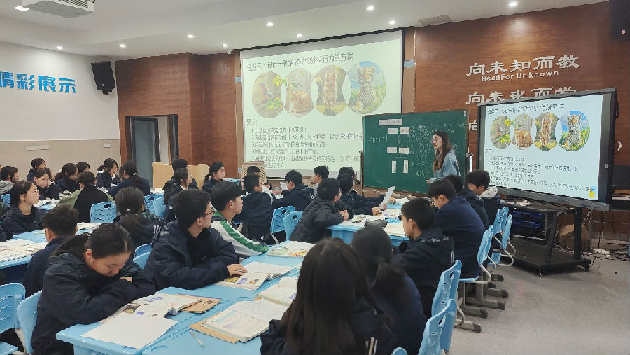 然后由金华市光南中学的孔雨晴老师执教公开课《动物的行为》,孔老师以饲养宠物为情境,围绕如何培养一只具有独特行为的宠物,通过了解动物的行为、解密小狗如何识数、设计一种培养动物独特行为的方案为任务展开教学。轻松自然,一气呵成。