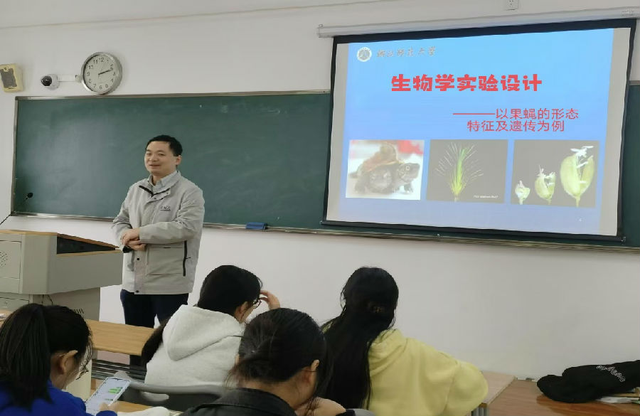 20日下午,浙师大饶玉春教授为我们带来讲座《生物学实验设计——以果蝇的形态特征及遗传为例》。饶教授通过实验目的、实验材料、实验原理、实验步骤、实验结果与分析和注意事项等方面对生物学实验设计进行专业的讲解。他要求我们应重视生物学实验设计的教学和实践,为学生提供更多元,更丰富有挑战性的学习机会。