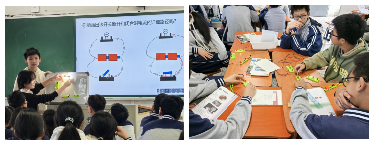 第一节是来自温州市第三中学的徐晓碧老师的公开课《电流与电路》,徐老师从“汽车语言”——转向灯和刹车灯入手,利用LED柔性灯丝作为教学工具,布置任务层层递进,通过巧妙的教学设计,有效组织学生开展探究活动,剖析了串并连电路的特点,使学生们对电流与电路的基本概念有了更加直观和深入的理解。为在场老师呈现了一堂精彩的科学课,充分展现了科学教学的魅力与价值。