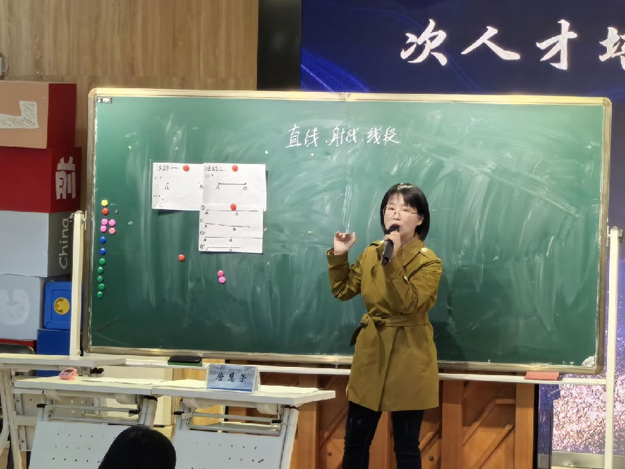 唐慧荣老师以蚂蚁爬的线路为素材进行《线段、直线、射线》的说课,颇具巧思。此素材直观形象,能迅速吸引学生注意力,让抽象的几何概念变得易于理解。以蚂蚁爬行的不同情境,可清晰呈现线段有头有尾、直线无头无尾、射线有头无尾的特点,助力学生区分三者差异。同时,这一设计还能激发学生兴趣,使其积极参与到对几何图形的探究中,为课堂教学营造良好氛围,充分展现唐老师在教学设计上善于从生活中取材并应用于数学教学的能力。