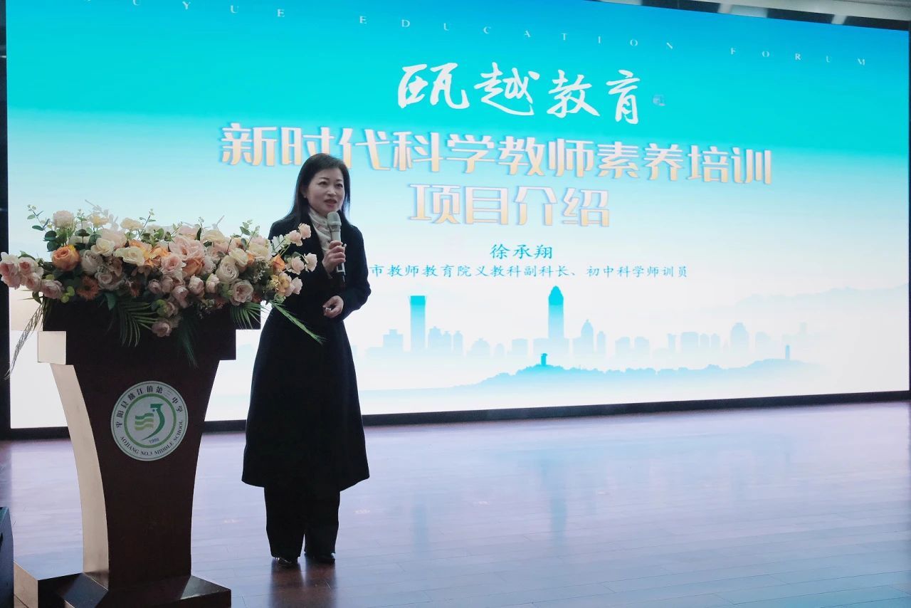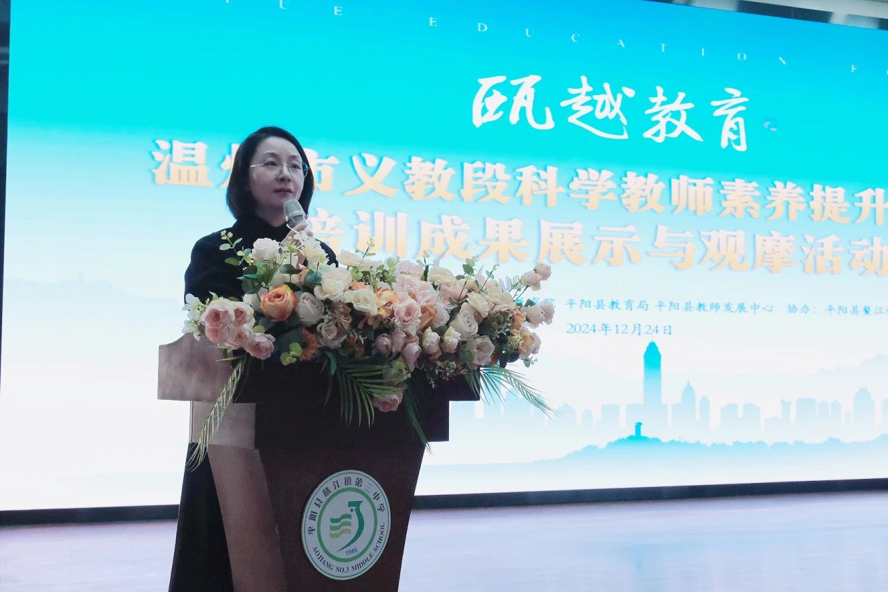 12月24日上午,瓯越教育·温州市义教段科学教师素养提升工程活动暨市首届科学教师素养大赛在平阳县鳌江镇第三中学举行。此次活动由温州市教师教育院院长李芳主持,旨在推进新课程、新课标与新教材的落地,促进我市义务段科学教师队伍建设与专业素养发展。