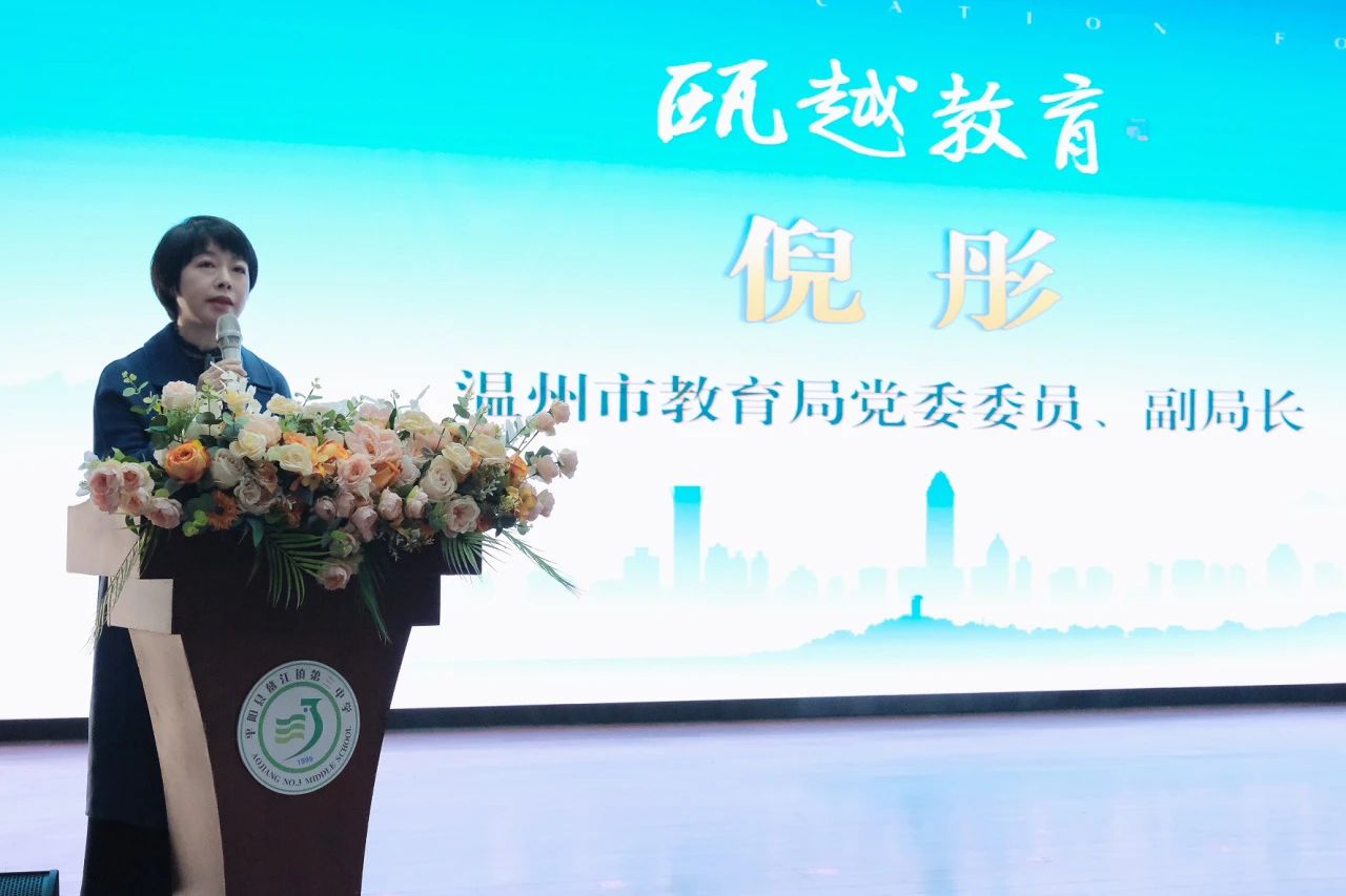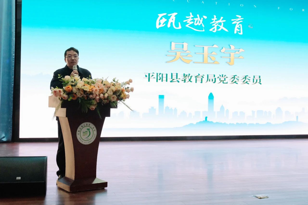 平阳县教育局党委委员吴玉宇发表了致辞,表达了对活动的大力支持,并期望通过此类合作,有效整合资源,促进教师队伍建设的互联互通、持续发展。